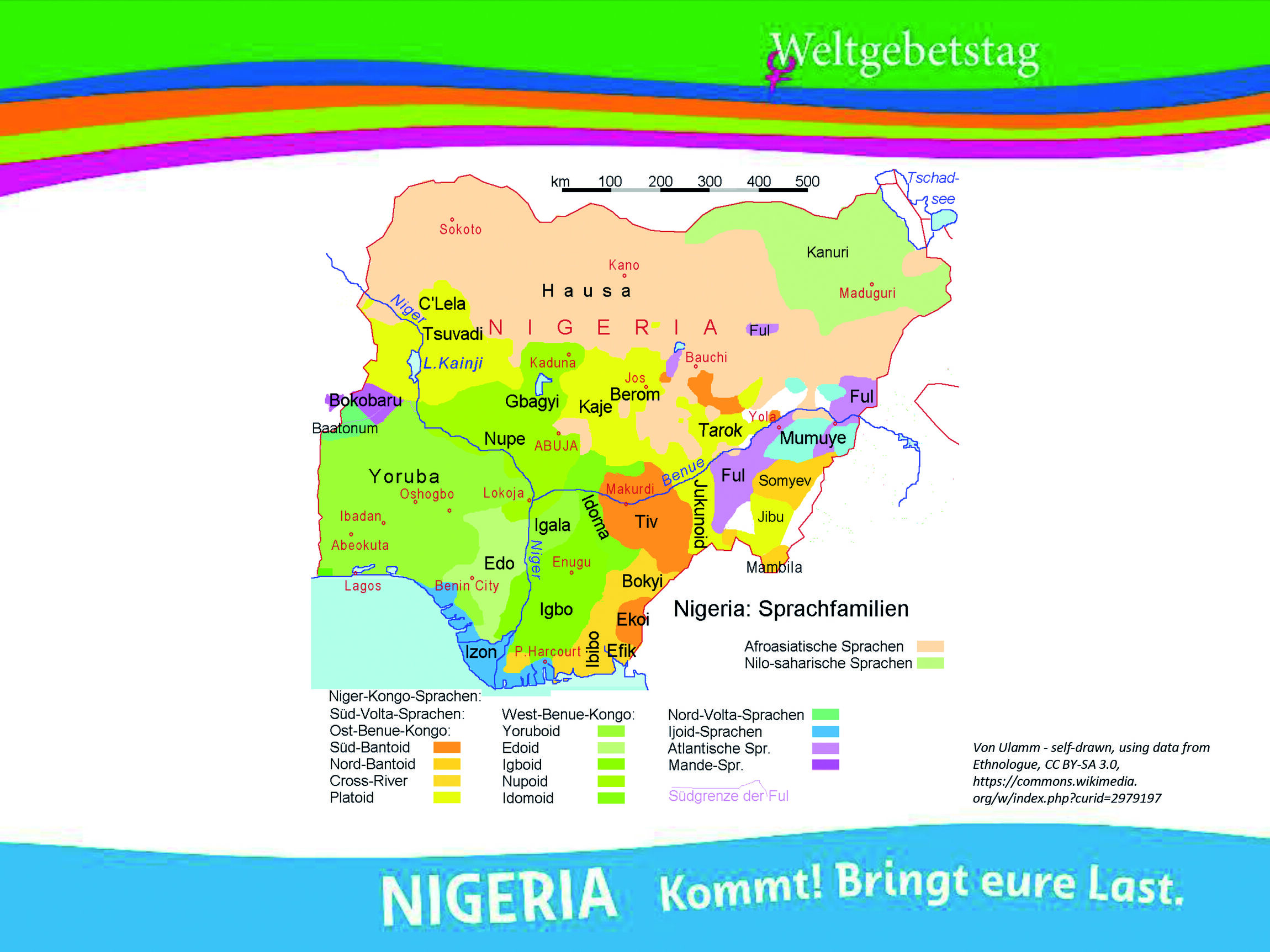Der Weltgebetstag 2026 wurde von Frauen unterschiedlicher christlicher Konfessionen aus Nigeria in Westafrika vorbereitet. Unter dem Motto „Kommt! Bringt eure Last.“ laden die Frauen uns ein „schwere Lasten Jesus zu Füßen zu legen und in seiner Verheißung Ruhe zu finden“