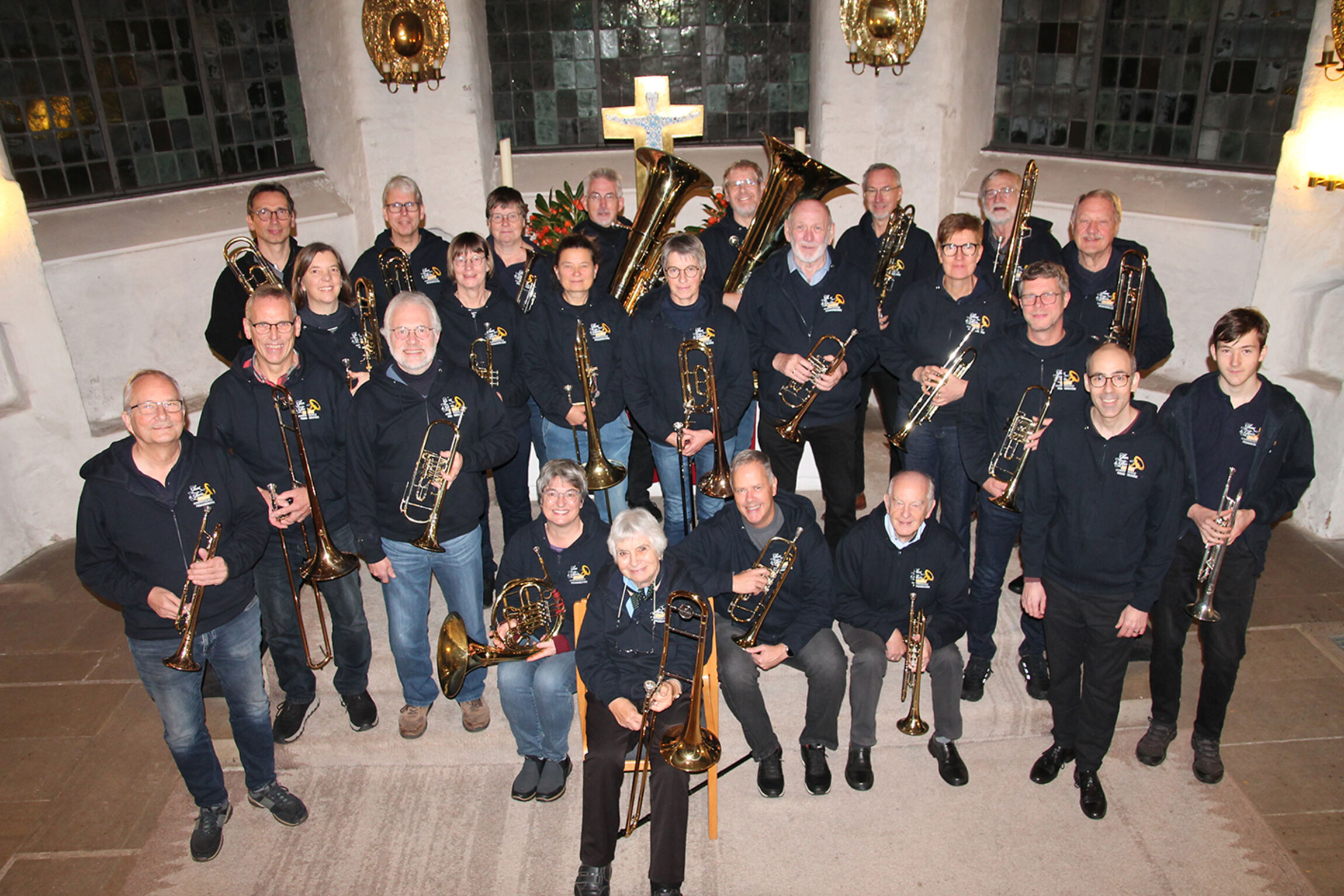 Derzeit sind wir ca. 30 Bläserinnen und Bläser aus allen Altersgruppen, die zusammen musizieren. Die Alterspanne reicht von der jungen Bläserin im Teenageralter bis zum erfahrenen Senior von über 90 Jahren Das ist schon etwas Besonderes, dass es so einen generationsübergreifende Aktivität gibt, von der alle Beteiligten profitieren und dabei Spaßmiteinander und an der Musik haben.