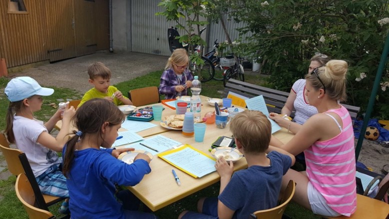 Spielerisch lernen sie biblische Themen kennen und bekommen durch eigenes Erleben Zugänge zu Gebet, Abendmahl und Taufe.